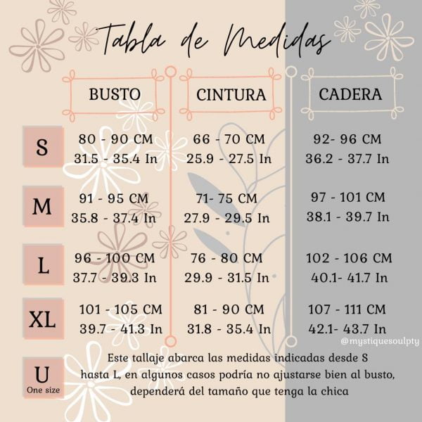 A continuación compartimos una tabla de medidas para que la tengas en cuenta al momento de elegir tu talla de ropa interior.